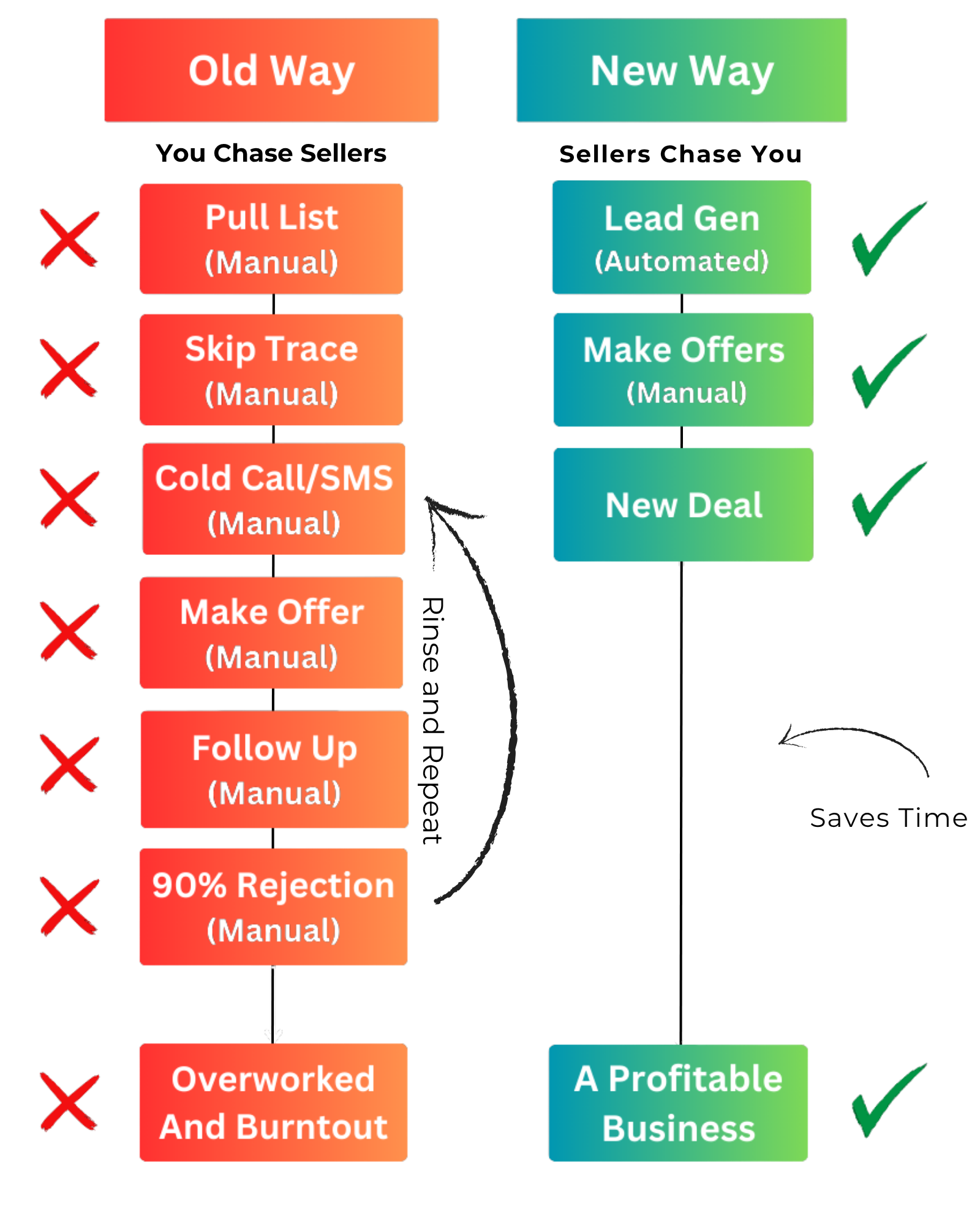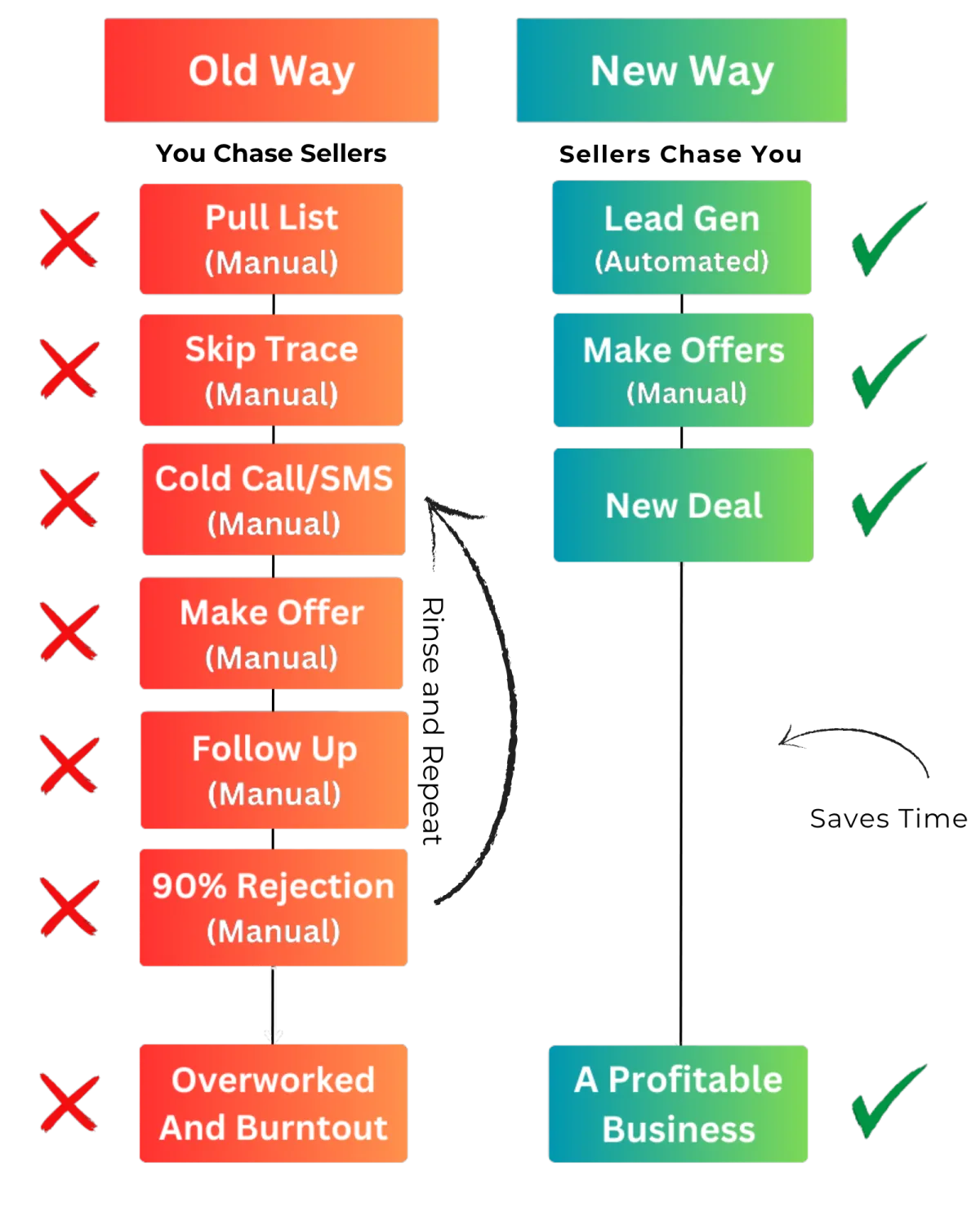 ...On one hand you're focused on getting new deals under contract and on the other hand you're too busy trying to chase down cold leads from follow up.